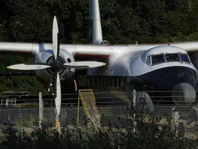 The passengers look out the window and see two men, dressed as pilots walking towards the plane. Both men are using guide dogs and appear to be blind. There are murmurs among the passengers, and some believe it is a joke.