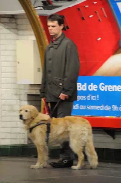 A blind man is walking down the street with his seeing-eye dog. They come to a busy intersection and the dog, ignoring the high volume of traffic zooming by on the street, leads the blind man right out into thethick of the traffic. This is followed by the screech of tires and horns blaring as panicked drivers try desperately not to run the pair down.